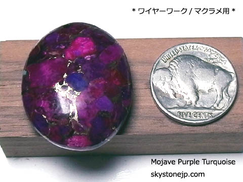 JUGEMテーマ:天然石・原石・ルース モハべ パープル ターコイズ(*マクラメ*ワイヤーワーク用両面研磨、バッキング処理なし) モハべシリーズは、キングマン鉱山で作られる人工石です。モハベ ターコイズは、スタブライズドされた青いキングマン ターコイズから作られます。そのターコイズは青、緑、紫色などに染められ、マトリックス(母岩)にはブロンズ色(赤味がかった茶色)を発色するブロンズ融合プロセス(Bronze fusion process)という技術で作り出されます。 ...