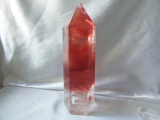 JUGEMテーマ:天然石・原石・ルース 高さ30センチほどのオベリスクです。水晶の中に瑞雲のような真っ赤な 内包物が見られます。 角度が変わるといろんな自然の造形が楽しめます。 この度縁があってモリオンマザーのところへきました。 南は、朱雀が守護神とされていますから、雲の流れに 鳳凰が見え隠れするのではないかと・・・ 下からライトアップする方法ないかしら? アトリエにいらっしゃるお客様には、これが龍に見える 方もいらして、グルメなお客様には「急に地の滴るステーキ 食べたくなった」などと なにかし...
