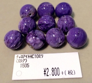 JUGEMテーマ:天然石・原石・ルースJUGEMテーマ:パワーストーン こんにちは本日2回目の更新ですカミキです今回は本日届いたばかり新商品のご案内ですチャロアイト ハイクラス 10ミリ(ロシア産) ¥2,800+(税)12ミリ(ロシア産) ¥4,600+(税)チャロアイト・・・純粋で優しい気持ちにする、感情・精神・肉体のバランスを保つといわれる10月の誕生石でもあるチャロアイトマーブル模様が特徴の美しい紫色の天然石です紫色は高貴で落ち着いた、大人な色ですよねちなみに・・・写真に写っている数だ...