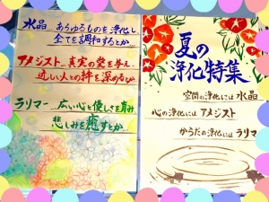 JUGEMテーマ:天然石・原石・ルース こんにちはヨシオカです本日は新しくしたレイアウトをご紹介ヨシオカ、ポップを書かせていただきましたご来店される皆様に少しでも季節感を感じていただけたら、幸いですこの、ポップの下はジャンッ!!空間を浄化には・・・水晶、心の浄化には・・・ラリマー、体の浄化には・・・アメジスト、各々、取り揃えております。最近、お疲れの方、お部屋のインテリアとして、寝室に、玄関に、いかがでしょうか???5月も今日で最後。。。6月がやって参ります店内も来月に向け変化しております。とく...