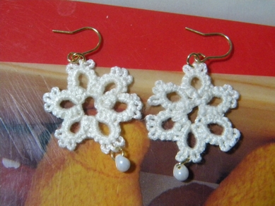 タティングレースのピアスを作りました。 普段の服装には、 真っ白じゃなくて、色物の方が合うような気がしました。 黒とか赤とか。 で、また作ろうと思います。 ※それに白は汚れますね、 右と左で色が違うのわかりますか? 右が黒ずんでいるので。手が汚れてたんですよ、 お菓子の作業の合間合間に編んでたから。 色違いをいろいろ作ってみたいと思います。 JUGEMテーマ:手作...