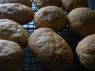 扁桃腺炎病み上がり後の最初のお仕事は、自分用のパン焼き。 ライ麦パン。 プチプチな肌感とちょっとくすんだ色、 いつものパンとちょっと違う匂い、 食べるとふんわり甘いライ麦パンを 焼いて、 楕円のパンには クリームチーズと梅ペースト。 レバーペーストでもあれば良かったんだけど・・・・ しょがない、熱出して何にも無いんだもの、梅でもあって良かった。 まぁるいパンには、 レタスとバジルと...