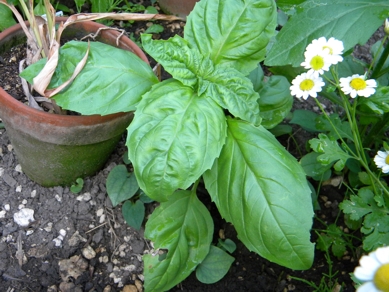 「大きくなったねー」 思わず声をかけた、バジル。 この子は、去年採った種から芽を出して、 残った小さな芽を土に植え、さらにたったひとつ生き残った子。 あまり手はかけてないけど、 気持はだいじにだいじに見守っていた。 生育も遅くて、双葉からなかなか本葉が大きくならなず、 次の葉もなかなか出てこなかった。 それが、 さっき見たら、いつのまに!って思うくらい 大きな葉っぱになっていた。 10センチ弱はありそうな。 ...