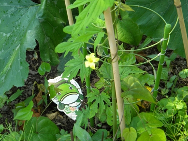ゴーヤの花が咲きました。 こんな花だったんだぁ、初めて見ました。 ゴーヤ用の添え木に長芋が絡みつく。はずしてもはずしても長芋がからまる。 いいのかなあ。 今年もムカゴは豊作、と見た。 果たしてゴーヤは? JUGEMテーマ:手作り(お料理・手芸・園芸)