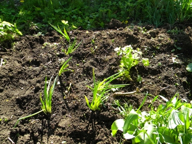 2017年6月7日(水) 気温、低いね。10℃とか。日中23度くらいまで上がって欲しいな。 今朝は、これですね、 ベビーサラダ。芽が出ました。 6月1日に種まきして。早いね、これ。 同じ日に蒔いたニンジンと、種イモ植えたジャガイモはまだ全然です。 それとこれ、咲きました。アヤメですか? 全体像はこんな。 アヤメ、ショウブ、カキツバタ・・似てるでしょ、お花。 どれかしら...