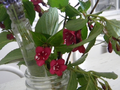 ツユクサを移植して、もうこれで終わったな、 と思っていたら、 旧母屋の南側庭の、ライラックの木のしたから 赤いお花が咲こうとしている。 それが、これ。 ライラックの折れた木からは次々と新芽がでてきてるが、 その下からライラックの葉っぱとは違う葉を持つ木から これまた新芽が次々と出てきて、 その先端に赤黒い蕾をつけている、 それが、これ。この写真のお花。 時折強い雨が土をぐちゃぐちゃのドロドロにした中、 傘さして、長靴...