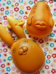母が物凄くニコニコして帰ってくるので「どうしたん?」と聞くとポケットから出てきたコレ。『1回で2つ取れてん!』なんだそう(笑)ウサビッチのパンスクイーズ。むにむにー。