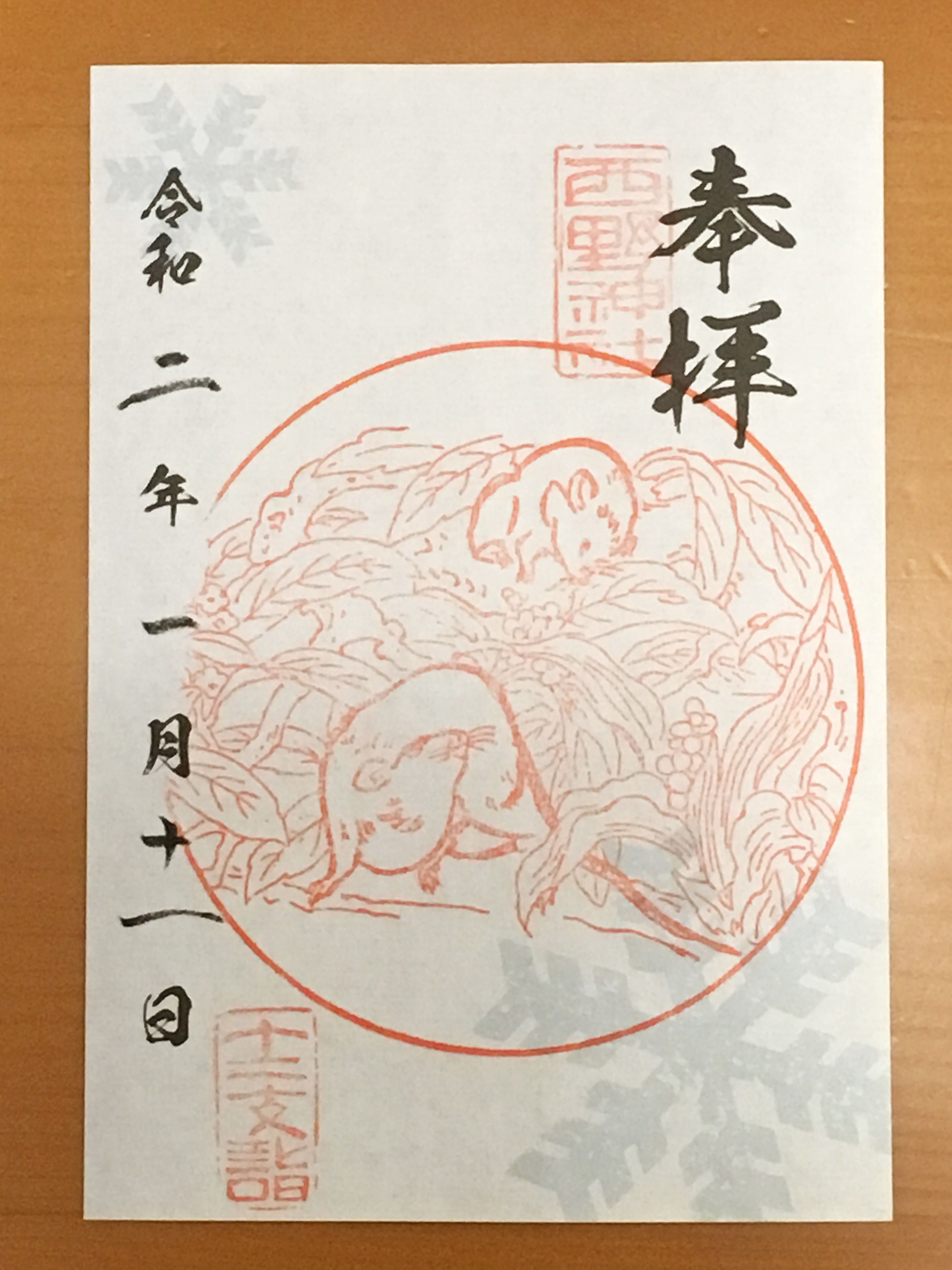 JUGEMテーマ:御朱印収集 こんにちは! 1月11日の土曜日、我が家の毎年の恒例行事である西野神社へ参拝に行って参りました。目的はもちろんその年の干支の御朱印を頂戴するのと、左馬のお守りを新調することです。今年はねずみ年、【子】の御朱印でございます。 今までは御朱印帳に書いて頂いていたのですが、今年は多忙のために書き置きの御朱印でした。雪の結晶がデザインされている紙に干支の御朱印が押印されています。 そして左馬のお守りはい...