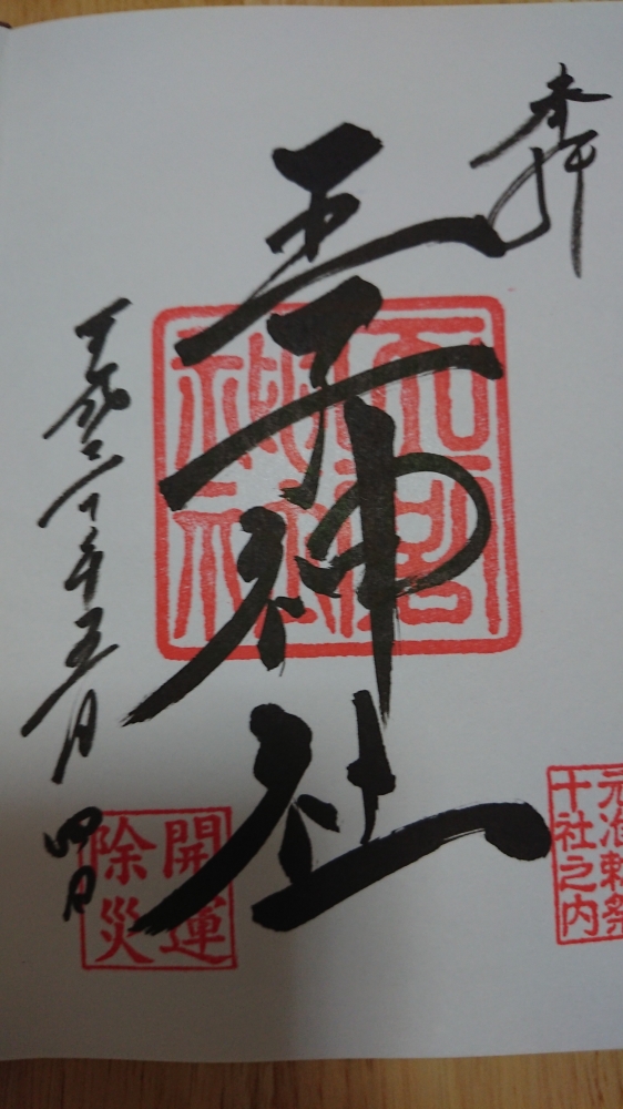 JUGEMテーマ:御朱印収集 改造鎌倉宮御朱印帳 最終頁 日付を見ると先月に行ってます。王子駅近くです。御朱印を書いてもらう人が結構 並んでいました。近くの石神井川を歩いてたのですが、恐ろしくでかいスッポンが 泳いでました。前にもこの辺りで川沿いの歩道を歩いていた時に蛇に遭遇したことが あります。