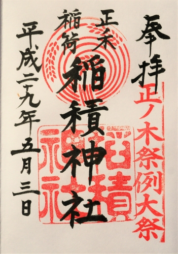 JUGEMテーマ:御朱印収集 稲積神社に参拝しました。 例大祭である正之木祭り限定の御朱印を頂きました。 御朱印帳は正之木祭りにあわせて上記の御朱印帳を販売開始。 以前から販売している青色の御朱印帳の紫バージョン。 しかし生産が間に合わなかったそうで、後日郵送で頂くことができました。 頂いたパンフレットから境内案内図。 稲積神社拝殿。 ...
