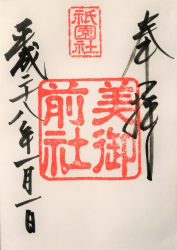 JUGEMテーマ:御朱印収集 八坂神社に参拝しました。 美御前社の御朱印。 青龍の御朱印。 悪王子社の御朱印。八坂神社でいただけます。 青龍の御朱印はこちらの封筒に入っていました。 12月31日の大晦日に参拝し、京都の大晦日の風物詩の「をけら詣り」をしてきました。 をけら火を縄につけた、火縄を持ち帰ります。 &nbs...