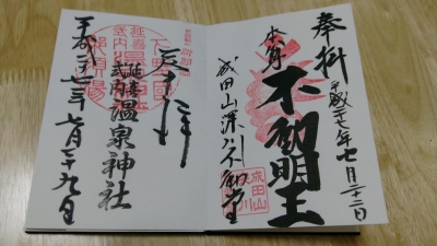 JUGEMテーマ:御朱印収集 寒川神社御朱印帳??ページ ? 私は成田山新勝寺にも2回行ったことがあるのですが、ここはその東京別院になります。 不動明王の墨書きが格好いいです。深川★富岡八幡宮 浦安★豊受神社と同じ日に行って ます。 ? 栃木県の那須にある温泉神社です。御神剣 二荒山神社では行ったことのない温泉神社の 御朱印を頂いてしまいましたが、そこではありません。。 ? ?と同じ日に行った源泉かけ流し温泉の「鹿の湯」のスタンプです。温泉場のスタンプは 珍しいかもです。 ?...