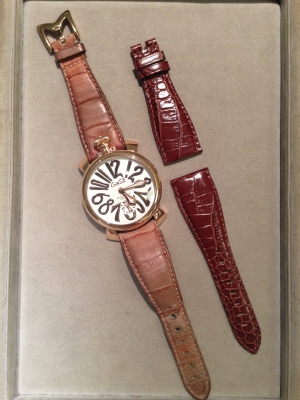 ガガミラノ用に作成された 【カシス TYPE GGM】という 革ベルトです。素材、作りほとんど違いはありません。 価格は、純正が 15,000円(抜)に対して 6,000円(抜)とお手頃価格です!(^^)! 左の純正ベルトから、右のガガミラノ専用ベルト【カシス TYPE GGM】に交換します! 純正ベルトと変わらぬ雰囲気でお楽しみいただけます(^^) 元々付いているバックルもそのままお取付可能でございます!! ◇◆◇時計修理・iPhone修理のことならウォッチレスキュー◇◆◇ ◇◆◇ホームページはこちら→http...