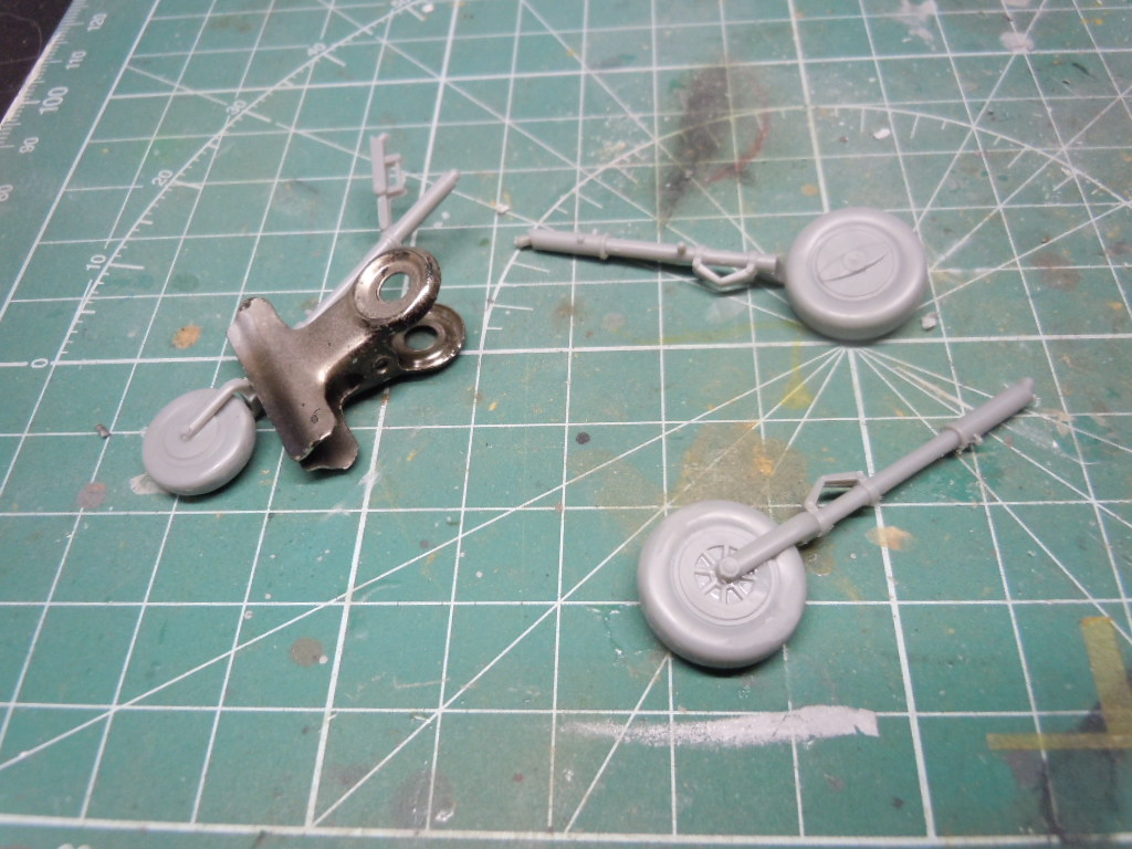 ちょっとしたディテールをします マスキングがひと段落したので、ここでちょっとしたディテールアップします。飛行機プラモデルの場合、コックピット以外ディテールする部分が出来ないです。私の技術的な問題ですけど。 そこで、真鍮線でブレーキパイプなんぞ、再現したいと思います。 ピンバイスで穴をちょっとあけますよ〜 こんな感じでパイプをとりつけ〜。機会感が出たでしょ! 塗装してみました!おぉ〜意外とうまくいったんではないでしょうかー JUGEMテーマ:模型飛行機