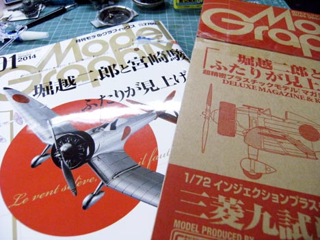 今月のモデグラは、1/72の九試単座戦闘機が付いて、ちょいとお高め。 作成を見る限り、1/72ですがモールドもしっかりしていますので、完成させたいですね。 風たにぬで話題になっているだけあって、今までキット化されていないプラモデルが出るのは良いことですよ〜。 製作方法もしっかりのってますので、これからはじめる方には、マニュアル的な一冊ではないでしょうか〜。 今年の暮れは以前の1/72などを一気に組み立ててみようなかなぁ〜 あと、気になったのがマガジンキットで永遠の0の公開に合わせて永...