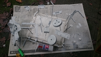 ダンパー問題は放置して、先に塗装に入ります。 最初にパーツを切り出し、食器用洗剤で洗います。 そして、サーフェイサーとやらで塗装しました。 他の方のブログを参考にがんばりましたが、やっぱり不器用ものです。 ムラや垂れがあちこちに…。 不器用者には、サーフェイサーがもう一缶あると安心か? とりあえず今日はここまで。 JUGEMテーマ:ラジコン