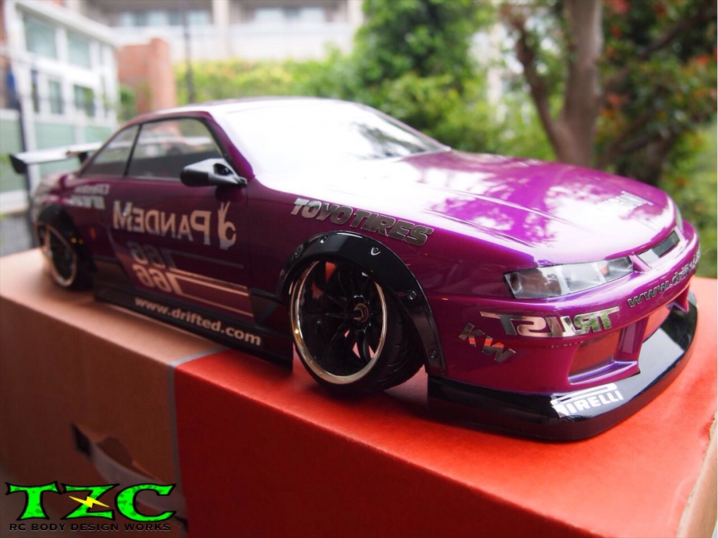 ・ストジャムの良質ボディS14シルビアをベースにカスタムした一品です! ・非常にクオリティの高いボディでその造形、ポリカボの厚み、プレスラインの美しさと繊細さ、今回はこの素晴らしいボディをベースにしました。 ・オーバーフェンダー装着によりフロント203mm リア210mmと大幅にワイドボディ化!! RWDドリフトでワイトレ化したシャーシにも、深リムホイールを装着したい方などに最適なワイドボリュームになっております♪ ・エアブラシ塗装です。ファスカラー調合によりTZCオリジナルカラー(パープルキ...