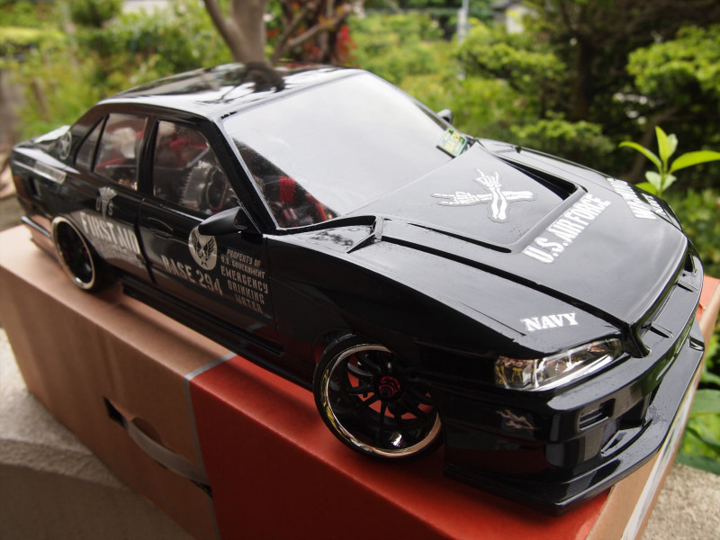 黒塗りドリ車 完成しました クリアなレッドテールとメッキテール かなりディープなレッドに塗り上げました 黒塗りボディと相性抜群ですね ブラック&グリーンのコントラストがお気に入りです JUGEMテーマ:ラジコン