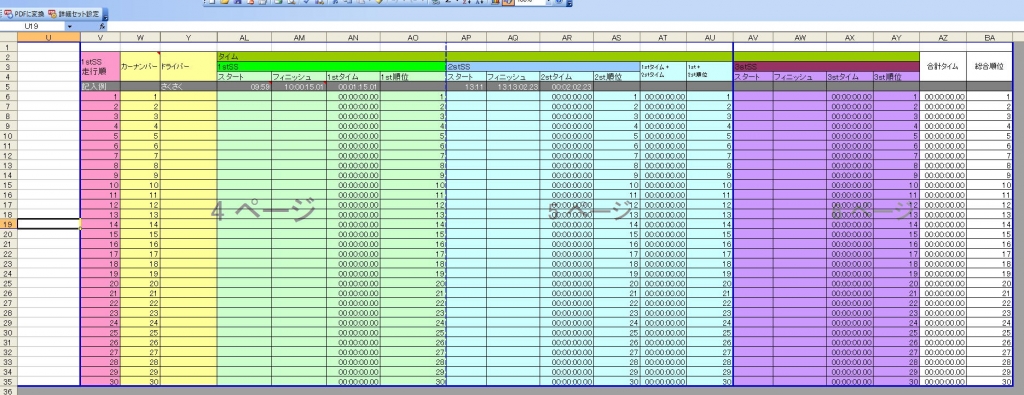 RCC・RFのコンセプト上、1台ずつしか走行できないので、複数のRCカー(ラジコン)が一斉に走行するレースと比べて観る方も操縦する方も盛り上がりに欠ける要素があるのは事実です。 その対策として走行順が1回目はゼッケン順、二回目が1回目のタイムの早い順、3回目が1回目と2回目の合計タイムの遅い順になってます。 それに対応したタイム集計シートをエクセルでここのところずっと作ってきたのですがやっとこさ完成しました。 普段Excelを使うことはあまりなく、あっても関数を自分で組むこともほとんどあ...