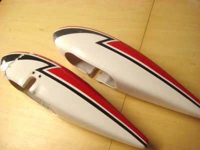 JUGEMテーマ:ラジコン ここ3日風が強くて全然飛ばせません。 スパッツの修理をすることになりました。 こんな状態です。 裏からグラスをあててー 表面をルーターで削ります。 Vカットみたいな感じにすると パテ盛った後にきれいにいきます。 パテを盛って一晩置いておきます。 ブログ活性化のため下のバナーをクリック よろしくお願いします にほんブログ村 リアルフライト7.5 インターリンクエディション (Mode1送信機、DVD付属セット) ...