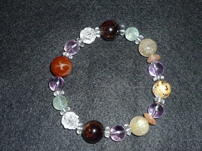 JUGEMテーマ:☆天然石・パワーストーン☆ 今日もオーダーメイドブレスレットの紹介をします。 ご注文くださる方をを風水を使って鑑定し、その人に合った石を使います。出来上がりましたら、気を注入致します。一度だけ、お気に召さない場合作り変え致します。 男性用です。 使用しました石は、本翡翠、ミラーカットアクアマリン、 ゴールデンルチルクォーツ、ガ―ディンクォーツ、ラピスラズリ、イエロー&レッドルチルバイカラー、ネフライト、ブルーレースアゲート、梵字刻印本水晶、ヒマラ...