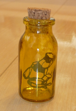 かえるちゃんの切絵の瓶詰っていう 一風変わったコンセプトの作品 普通に切絵を飾るより面白いでし そして切絵がリアル系かえるちゃんでくい〜ん好みです この作家さんはいつもお酒飲みながら切絵してるんだって 手を切らないように気を付けてください あおり〜ん 英世1〜2人分くらい