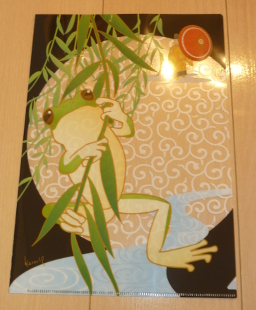 むかしイラストがすごい気に入ってカレンダーを ゲットしたがまぐちケロリエさんのクリアフォルダを ゲットです やはりスタイリッシュで素敵なイラストです 唐草模様もよく見るとかえるちゃん 細かなデザインも素敵です がまぐちケロリエ ¥500.-