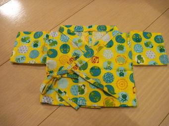 祭りでコケロミン用の甚平発見 コケロは小っちゃいので市販の赤ちゃん用でもおっきくて 作るしかないのかでも型紙が必要でし という状況でナイスです、畦道本舗さん 早速着てみるとかわいいぃ〜 うちのコケロも満足してまする〜 畦道本舗 ¥800.-