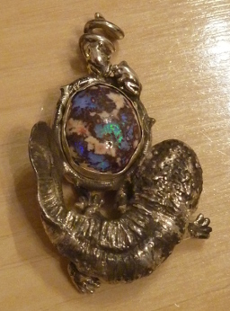 目黒雅叙園の新年イベントMIYABI遊園から サンショウウオとかえるちゃんのコラボペンダントを連れ帰りました オパールの上にかえるちゃんがお二人 下にサンショウウオさん サンショウウオさんは燻しで模様が表現されています 細工が細かいですねぇ 時間と共に酸化具合と磨き加減で模様が変わると思いますが それも楽しみでし そしてこのペンダントは オパールとサンショウウオさん達に分離するのです このペンダントみたいです オパールが良い色出すんですよ〜 ...