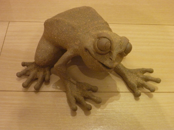 ちょっと前ですが旦那の誕生日プレゼントで かえるちゃんの焼き物を頂きました 手のひら大のなかなかの重厚感です キョロっとしたお目々 ニヤリとした口元 アインシュタインみたいですね うちでは教授と呼ぶことにしましょう 聞くところによると紐状の粘土を積み重ねて 作っていくらしいです ちょっと作成過程が想像できませぬぅ 田口智史