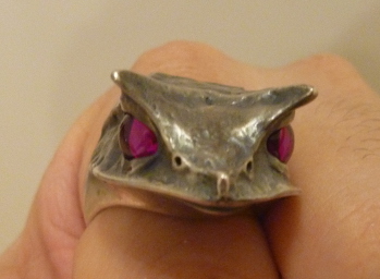 ちょっと前ですが、旦那の誕生日プレゼントで コノハガエルちゃんのリングを贈ってみました 昔、くい〜んが買ってもらったコノハちゃんとデザイン同じですが お目々の色が違います くい〜んのは目が真鍮で金色 旦那のは人工ルビーで赤目です 並べてみるとくい〜んのは模様のくぼみが燻されて いい感じに渋くなっていますね 旦那のはまだぴかぴか ちなみに昔は根津にあったErukaさんは いつの間にやら世田谷の桜新町に引っ越していました アクセサリーの修理もやってるみたいで ...