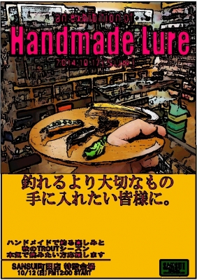 来たる10月12日 サンスイ町田店様でハンドメイドルアー展が開催されます。馬の助ルアーも出展販売されますので宜しくお願い申し上げます。 >|||||(・> 不思議の殿堂 <・)|||||< 毎度のご来店、ありがとうございます。 冬の足音が聞こえてきます。 ↓ JUGEMテーマ:ハンドメイドルアー