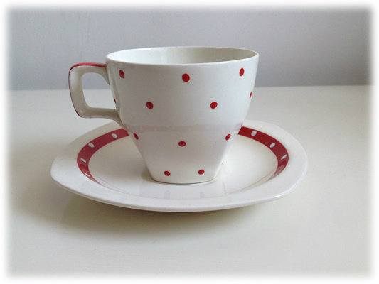 JUGEMテーマ:英国アンティーク・ヴィンテージ食器 ミッドウィンター・レッド・ドミノ・カップ&ソーサ ジェシー・テイトによるミッドウインターの作品中で大人気なパターンです。 ハンドペイントのドットは半世紀経った今で斬新です。 ホーム > 訳あり特別価格ミッドウィンターフェア!!断然お得です!! にほんブログ村