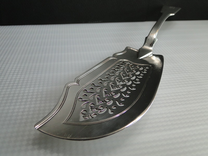 JUGEMテーマ:英国アンティーク・ヴィンテージ食器 フィッシュスライスサーバー 透かし模様が美しい 長さは約29.7cm 重さ約149g ジョージアン 1837年