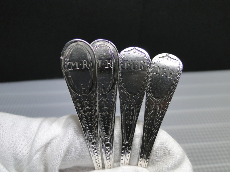 JUGEMテーマ:英国アンティーク・ヴィンテージ食器 イニシャルは同じだけれど、工房が違うブライトカットのスプーン 1801年と1806年 1801年の方が、はっきりとジョージアンの横顔が見える・・・・ 200年の時の流れを感じるジョージアンのスプーン