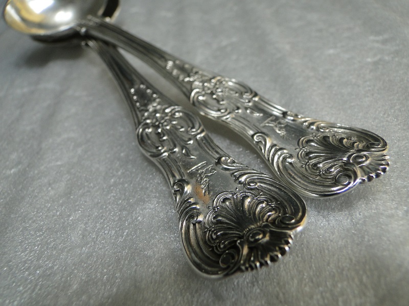 JUGEMテーマ:英国アンティーク・ヴィンテージ食器 純銀のソルトスプーン パターンは、クィーンズパターン しかも、お気に入りのダブル・ストラック