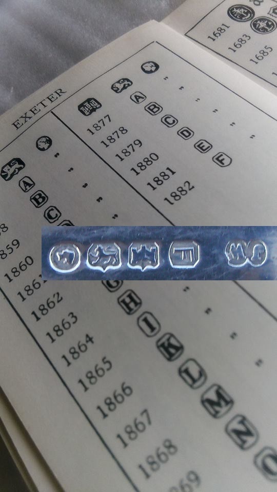 JUGEMテーマ:英国アンティーク・ヴィンテージ食器 Assay Mark=アセイマーク(産地刻印)とは、 銀器がどこの都市のアセイオフィスが検査したかを示している刻印。 ロンドン、バーミンガム、シーフィールドはよくみかけるが、 他にも、エクセター、グラスゴー、ニューカッスルなどある。 手元にある銀器のほとんどが、ロンドン、バーミンガムで、 これ以外のアセイマークのある銀器に出会うと、喜んでしまう。 EXETER...