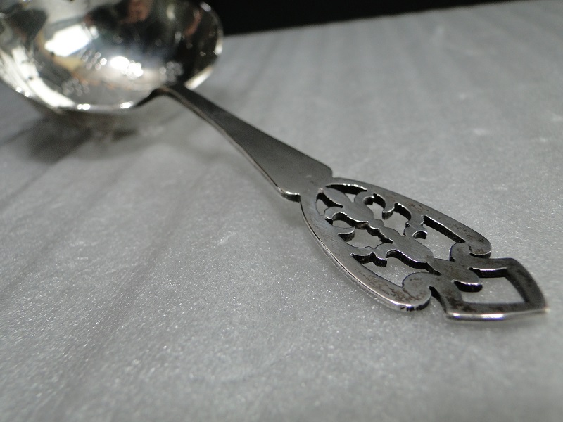 JUGEMテーマ:英国アンティーク・ヴィンテージ食器 純銀製のティーストレーナー Mappin & Webb・マッピン&ウェッブ Sheffield 1965年 ティーカップのふちにボウルをかけることができる・・・