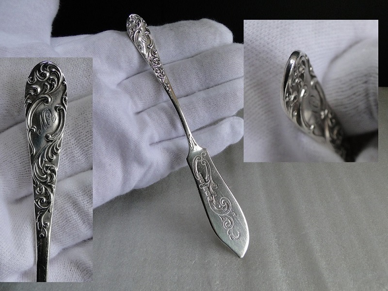 JUGEMテーマ:英国アンティーク・ヴィンテージ食器 バターの銀器・バターナイフ ナイフに施された見事な彫刻 バターを塗りながら、 歴史を感じるのも、いい 118年前、イギリス Sheffieldで作られたバターナイフ James Dixon & Sons Ltd