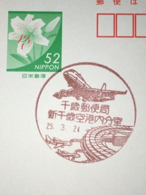 JUGEMテーマ:風景印 こんにちは! 今回の旅行は金曜日・土曜日の旅程だったので、風景印を頂くための郵便局巡りは初日の金曜日のみ。まずはフライトの前に新千歳空港の中にある【千歳郵便局新千歳空港内分室】からスタート! 新千歳空港ターミナルビルと飛行機がデザインされています。 新千歳空港を飛び立ち、降り立ったのは中部国際空港・セントレアです。こちらにある【常滑郵便局セントレア分室】に立ち寄りします。 ...