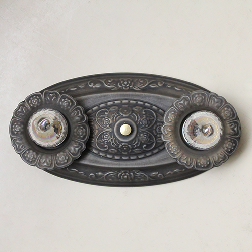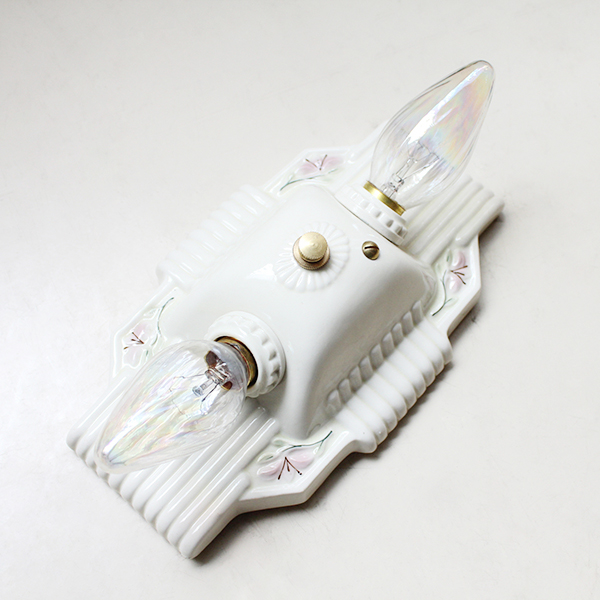 ANTIQUE CEILING LAMP 2灯の シーリングライトです 天井に直付けできる照明 陶器のつるりとした質感の四隅には 可憐なピンクの花が 施されています 壁付けにも使用可能です stock 2 ト...