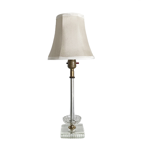 VINTAGE TABLE LAMP made in U.S.A c.1950's シンプルなデザインの ガラスの台座のテーブルランプ シェードは製作したものです 小さなランプの灯りは 真っ暗な空間に ポツンと灯すと 安心感が生まれます ...