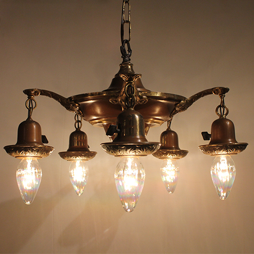 こんにちは。 Unknown Frunitureのサナシンです。 ヴィンテージは基本的に形は変えずにというのが私の考えなのですが、オリジナルパーツの有無などによっては形状そのものを変えてしまう事もまれにあります。 こちらのシャンデリアは違和感無く仕上がっていますが、実は形状を変えてしまっています。 メンテナンス中の記事はこちら→ イメージした形。 現在は上向きのE12の4灯になっています。 本体以外は新しいパーツで組んでいますが...