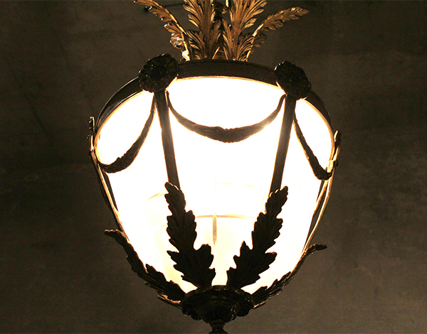 ANTIQUE PENDANT LAMP 真鍮と硝子の ペンダントランプは c.1940's made in France 天井が高いところに下げると映えますが テーブルの上に わざと低めにセッティングするのもアリです * 今日は使いやすい家具が仕上がり店頭へ! すでに暗くなっていたので 明日写真を撮ってUP...