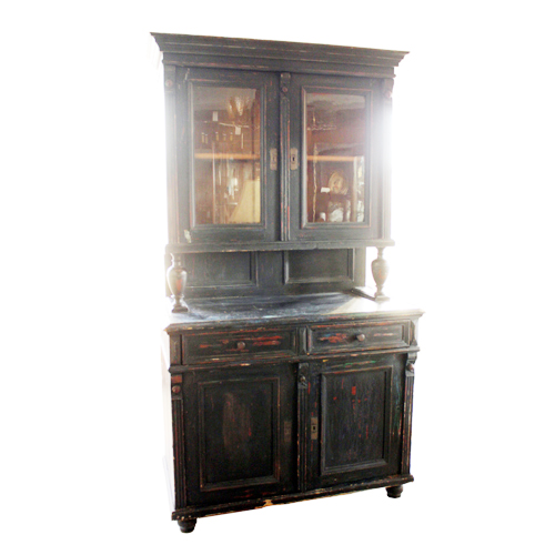 ANTIQUE CABINET なんども塗り重ねられた アンティークのキャビネット ただいま店頭でご覧いただけます 最終的には 黒でペイントされたようです 棚板は上段・下段共に 一枚ずつ入っています 取り外しできます ガラスの扉は ユラユラ硝子 &nbs...