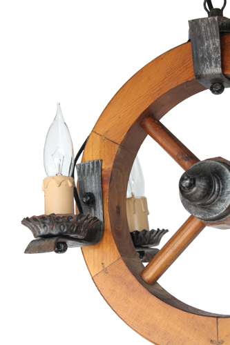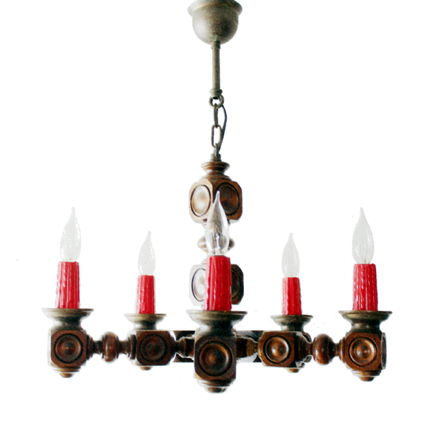 VINTAGE CHANDELIER ハンドルのような丸いベースが特徴の ヴィンテージのシャンデリア 4灯のシャンデリア球を 付けて写真を撮ったつもりが 1灯間違えて水雷球を付けていました 右側手前のが一つ違っています 電球によって 少し感じが変わります  ...