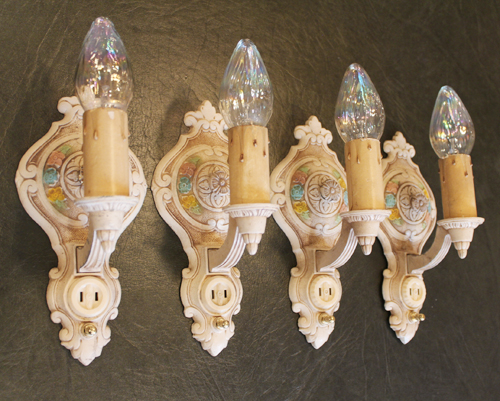 ANTIQUE WALL LAMP 貴重な4台揃いの アンティークの壁付照明 偶数揃っているので シンメトリーにペアで使用して欲しいです コンセント使いもできますが できれば壁に電気工事を入れて 直付けがスマートです * すりガラスシェードの 壁付照明なども仕上がり 店頭に出て...