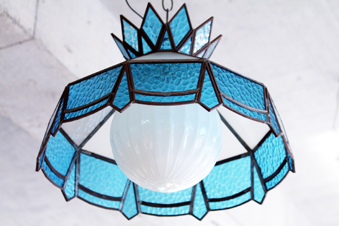 VINTAGE PENDANT LAMP 爽やかなブルーの ステンドグラスが印象的な ペンダントランプ 仕上がりました 吸い込まれそうな氷河のような青です (^^) JUGEMテーマ:アンティーク&インテリア ...
