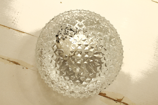 VINTAGE CEILING LAMP 大きなガラスのシーリングライト 天井に直付けするタイプの照明です 電球が中に2灯入るので 明るさが欲しいところへどうぞ! ガラスの凹凸が 点灯させると壁に映り込んで キラキラ美しいです * 同じような...