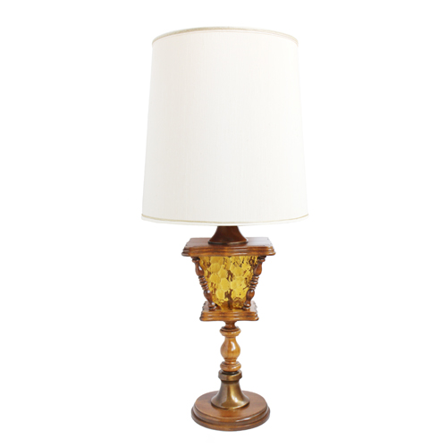VINTAGE TABLE LAMP ガラスと木の組み合わせです スイッチを回すとこのように ガラスの中が点灯します ガラスの中の電球交換は この一枚のガラスを 隙間から外して 行います 次はシェードだけ点灯して 最後は両方点灯します 3way 夜はとても影が美しい...